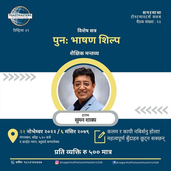 Delivered an Educational Session in Nepali at Sagarmatha Toastmasters Club