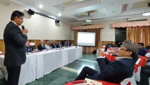 Presenting Division A (Nepal) report at Toastmasters District Executive Council meeting.